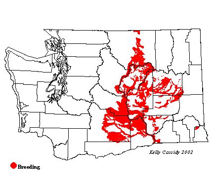 Sage Thrashers are locally common breeding birds in eastern Washington sagebrush habitats from the end of March to mid-August. They avoid areas dominated by cheatgrass, but are fairly common along Yakima and Umtanum Ridges, on the western half of the Yakima Training Center (Yakima County), and along the Old Vantage Highway between Ellensburg and Vantage (Kittitas County). West of the Cascades, they are casual to rare migrants in spring.