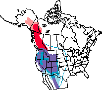 In breeding season, Townsend's Solitaires are common in high-elevation forested areas throughout Washington, including high-elevation alpine parkland areas along the Cascade crest, and near Mount Rainier and other major volcanoes. They can be found in the northeast Olympic Mountains where they nest above 3,500 feet, although they are absent from the wet forests in the western and southern Olympics, which aren't as steep at the northeast part of the range. In eastern Washington, Townsend's Solitaires can also be found in lower-elevation forests, such as the Dishman Hills area near Spokane. They are common in the eastern Blue Mountains, but uncommon in the western Blue Mountains above 2,000 feet. They are fairly common migrants on the San Juan Islands in a very limited window of time each spring. You can see them in the foothills on the west side of the Cascades in early spring, waiting to go up the stream courses.